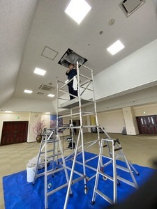 天井埋込エアコン(天下)本島北部にて数百台洗浄中